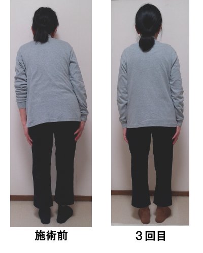一昨年の夏、入院してブロック注射をして歩けるようになったので暫く通院していたのですが、引っ越しをして遠くなってしまったので他の所を探して調べていたら、たまゆらさんのサイトを発見しました。痛くなく歪みが直せると書いてあったのと、他の人の感想などを読んで決めました。